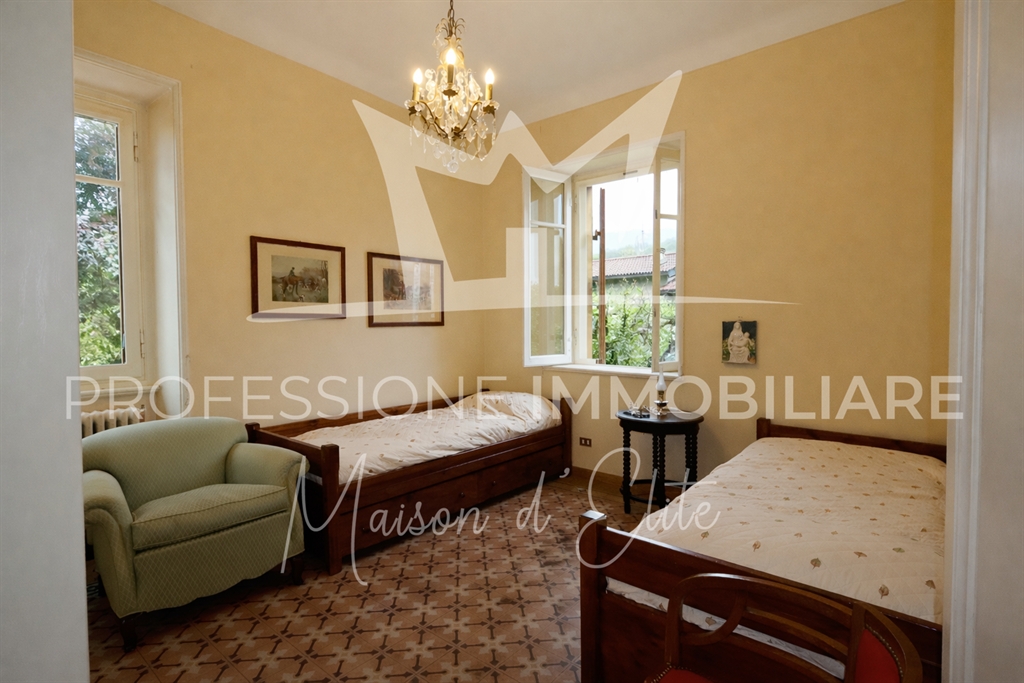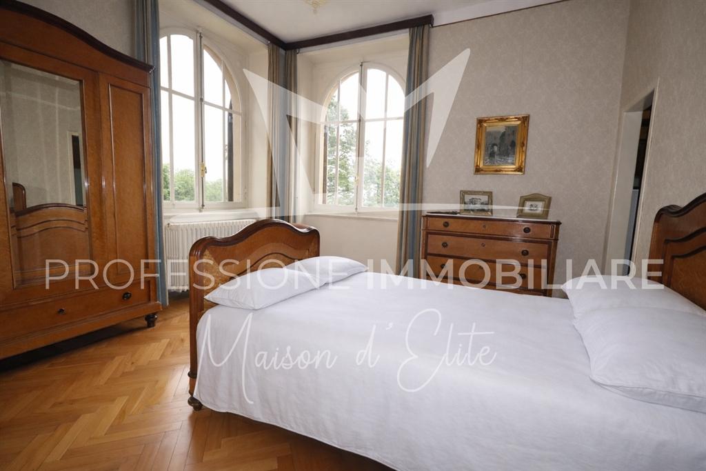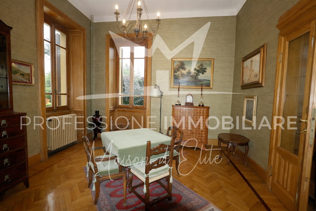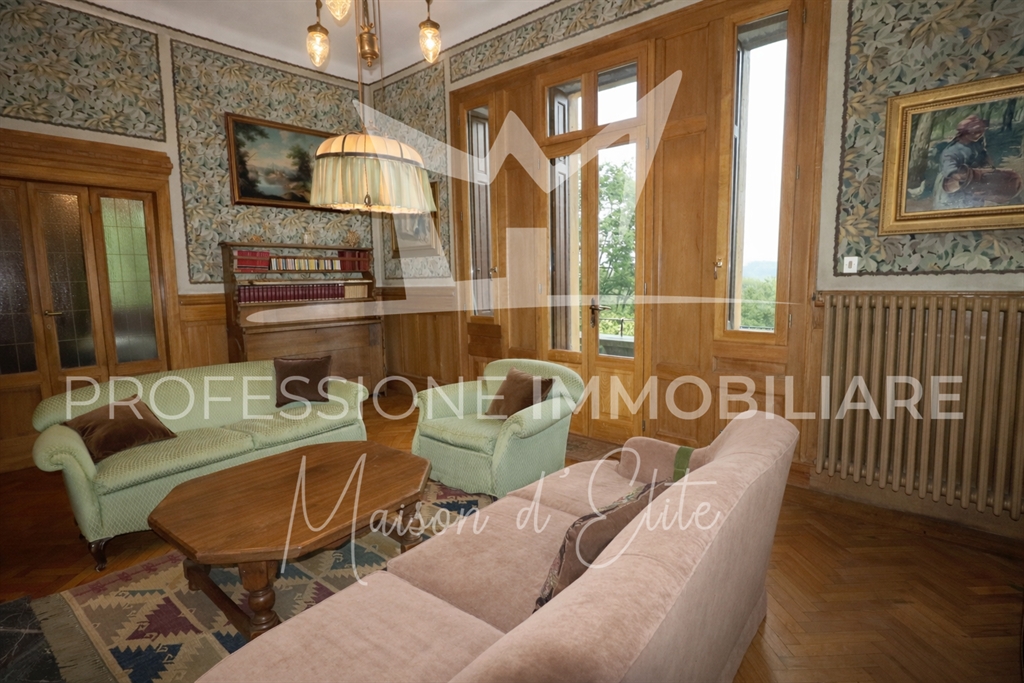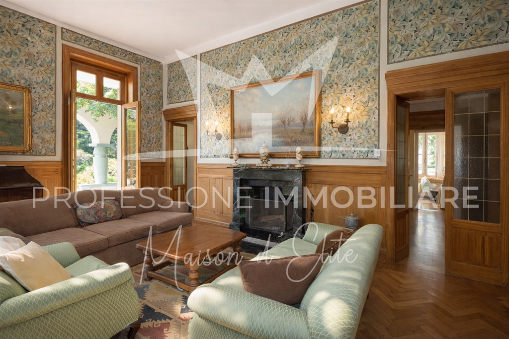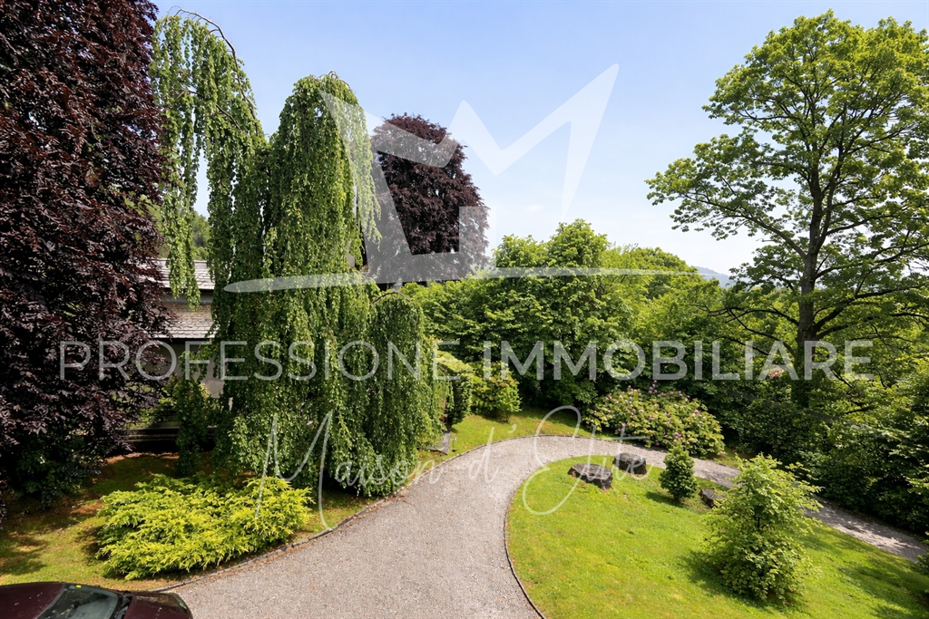 La villa, completamente indipendente, è circondata da un parco privato di circa 2.300 m², arricchito da alberi secolari, ampie aree verdi e scorci panoramici mozzafiato sui laghi e sulle montagne circostanti. L’immobile si sviluppa su più livelli, per una superficie commerciale complessiva di 503 m², e conserva intatto il fascino dell’architettura liberty, con dettagli d’epoca, alti soffitti e spazi generosi.