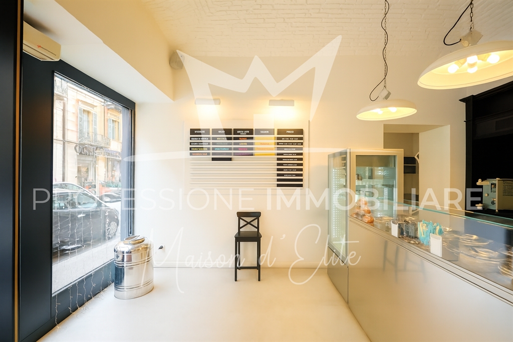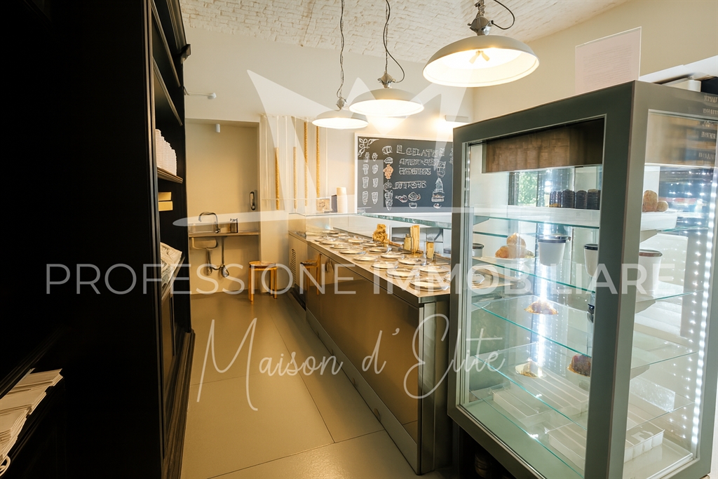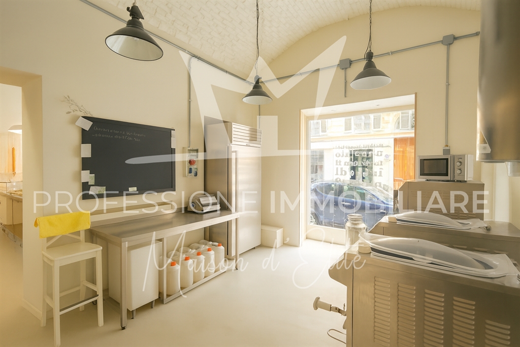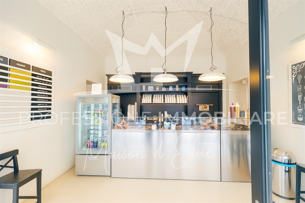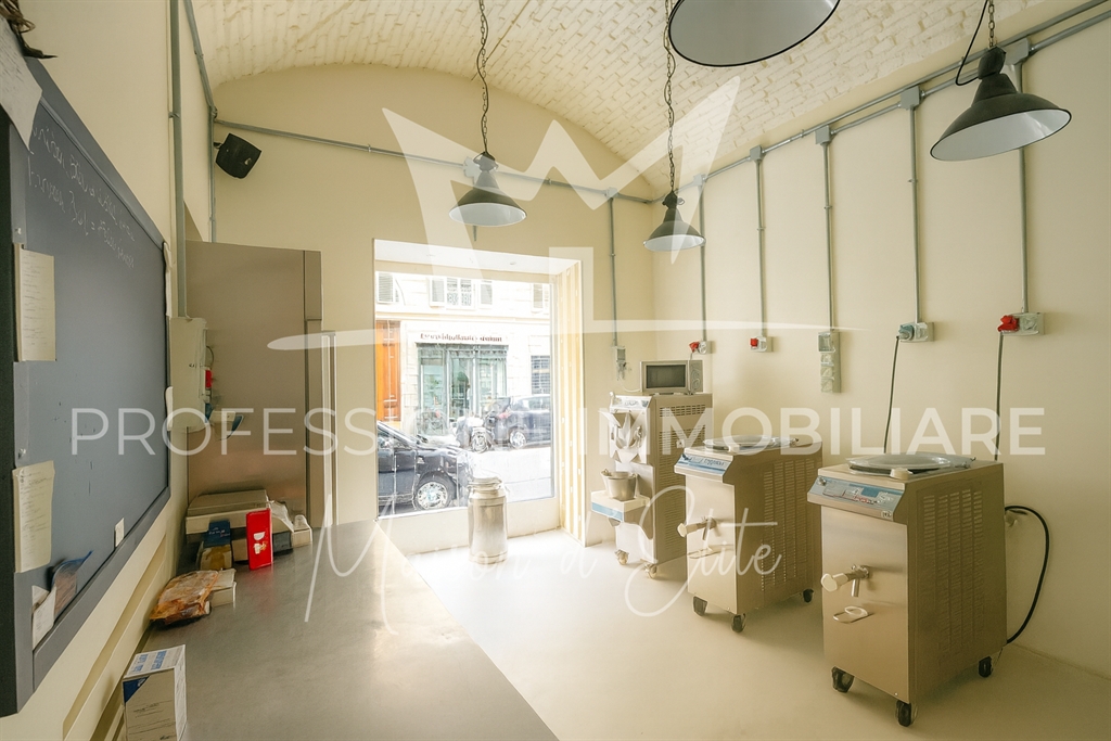 Ampia zona vendita e somministrazione fronte strada con vetrine su Via Mazzini, banco pozzetti e spazio per l’esposizione dei prodotti.