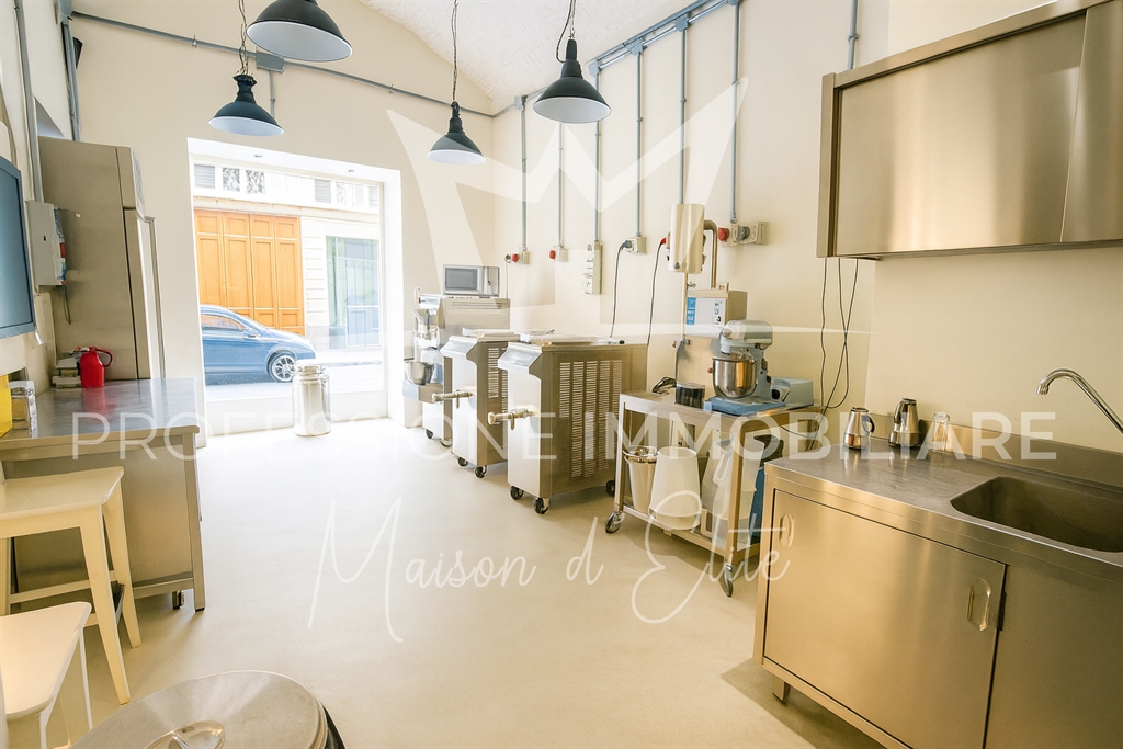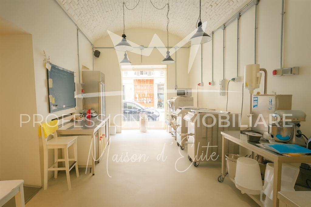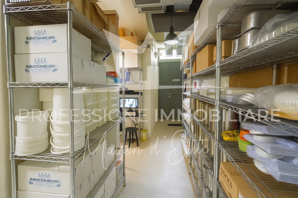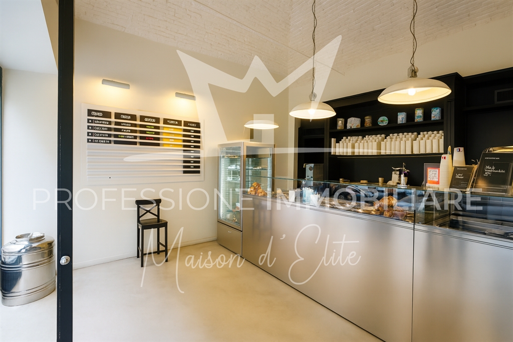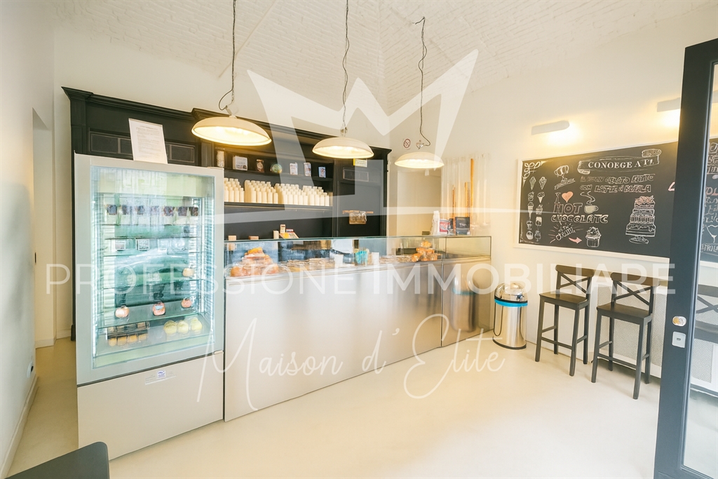 Ampia zona vendita e somministrazione fronte strada con vetrine su Via Mazzini, banco pozzetti e spazio per l’esposizione dei prodotti.